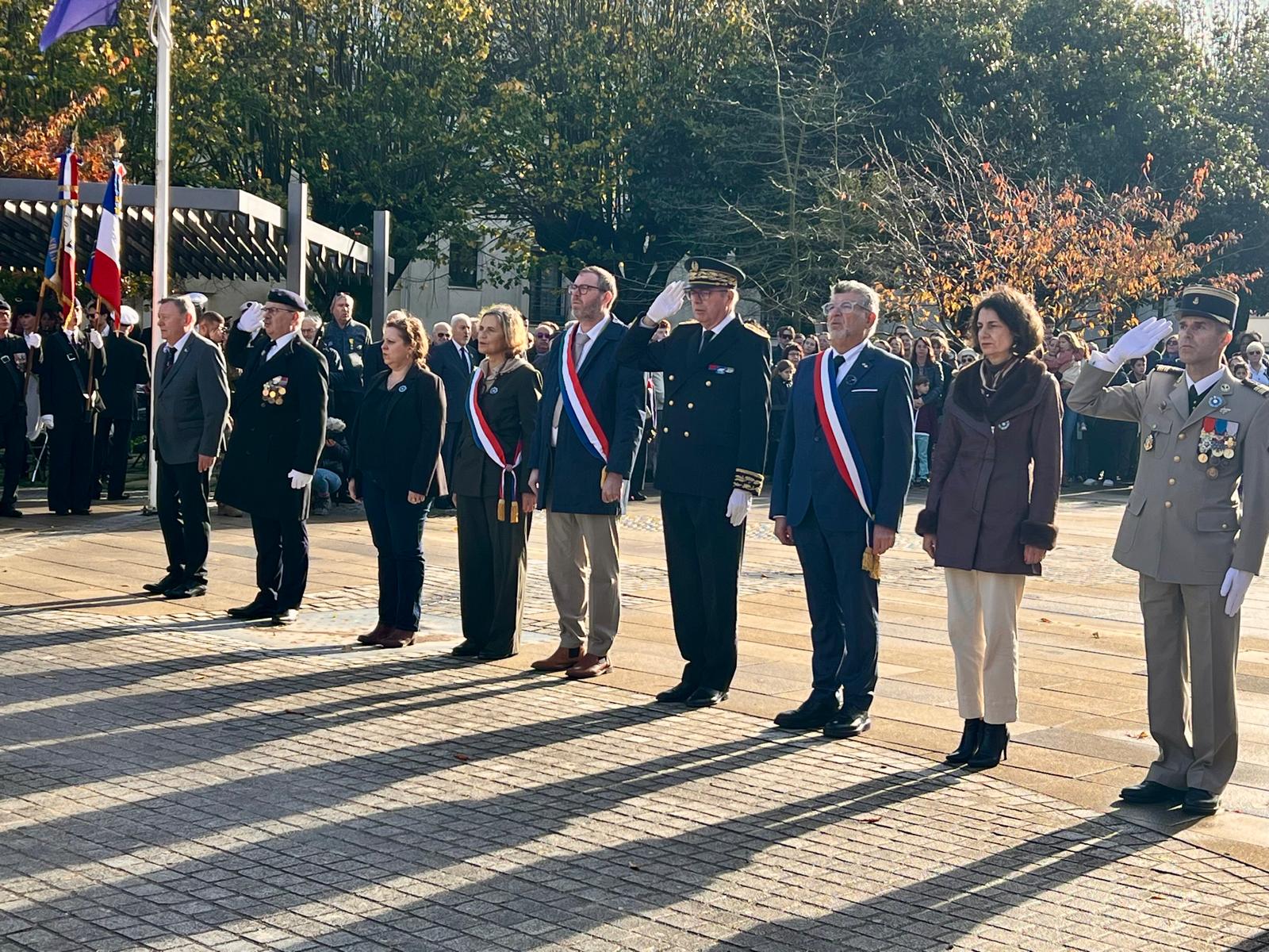 Comme chaque année s'est déroulée la cérémonie du 11 novembre place Simone Veil à La Roche-sur-Yon. L'ANMONM Vendée y était représentée entre autres par sa présidente Michèle Peltan et son porte-drapeau Philippe Potier. Au cours de la cérémonie, Monsieur Gérard Gavory, Préfet de la Vendée, a donné lecture du message de Madame Catherine VAUTRIN, ministre des Armées et des Anciens combattants et de Madame Alice RUFO, ministre déléguée auprès de la ministre des Armées et des Anciens combattants
